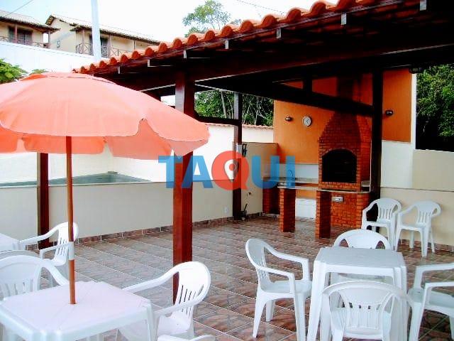 O condomínio é composto por: Piscina; Churrasqueira; Salão de jogos; Sistema de segurança eletrônica; Tv e internet; Zelador.